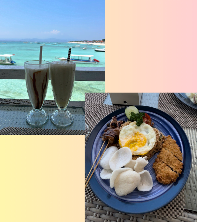 スピードボートで快適にレンボンガン島へ向かいます。 船に乗っている時間は30~40分ほどですが、船酔いしやすい方は酔い止めを事前にご服用ください。